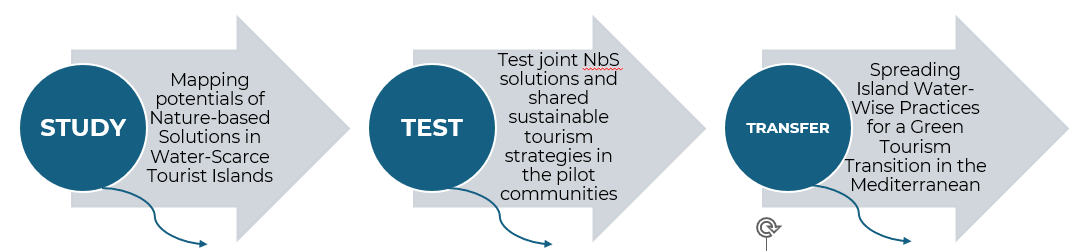 WATERISE promotes climate change adaptation and resilience with ecosystem-based approaches in the water-scarce tourist islands where nature-based solutions and water-saving tourism strategies are jointly developed improving water security. Transnational cooperation on these islands enables local authorities and tourism stakeholders to adopt water-wise measures, fostering sustainable tourism throughout the Mediterranean.